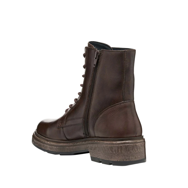 Anfibi Donna Geox Swelen colore marrone D565GE00046C6006. Gli anfibi donna Geox Swelen, in un’intensa tonalità di marrone scuro, sono la calzatura ideale per chi cerca uno stile contemporaneo che unisce carattere e versatilità. Questo modello è pensato per affrontare le giornate in città con praticità, aggiungendo un tocco grintoso ai look urban. La tomaia è realizzata interamente in pelle bottalata, un materiale di pregio che assicura resistenza e un aspetto ricercato. La fodera, in un mix di tessuto e sintetico, offre una calzata confortevole. Il design essenziale e funzionale di Swelen garantisce comodità anche durante le lunghe camminate. Questi anfibi sono l’alleato perfetto per completare con personalità i tuoi outfit più casual.