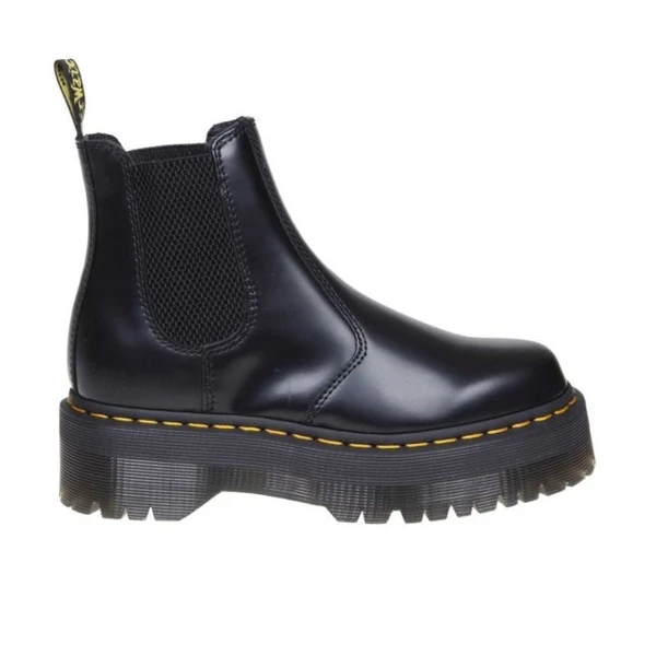 Anfibi Dr. Martens 2976 Quad Smooth. Anfibi unisex con zeppa da 4cm, pratici da indossare grazie al pannello elastico alla caviglia. Modello versatile che si adatta a qualsiasi stile.