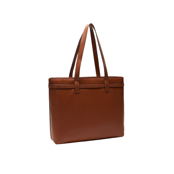 Borsa Donna Liu-Jo AA5135E0033 colore cuoio. La borsa tote donna Liu-Jo AA5135E0033 è l’accessorio ideale per chi cerca una borsa capiente e funzionale, arricchita da dettagli glamour e l’inconfondibile stile Liu-Jo. Questa borsa tote è realizzata in PU (poliuretano/similpelle), un materiale che ne assicura durabilità. La chiusura è gestita da una pratica cerniera, che garantisce la sicurezza degli oggetti. I dettagli di branding sono eleganti: sul davanti è applicato un logo in metallo. Il design è impreziosito da un cinturino con fibbia regolabile e borchie che aggiunge un tocco di carattere. L’interno è spazioso e ben rifinito con una fodera con logo, una tasca interna con cerniera per l’organizzazione e un’etichetta con logo interno. La base della borsa è protetta da piedini metallici, un dettaglio che ne aumenta la stabilità e la durata. Le misure generose sono di 39 x 10 x 29 cm, rendendola perfetta per l’uso quotidiano.