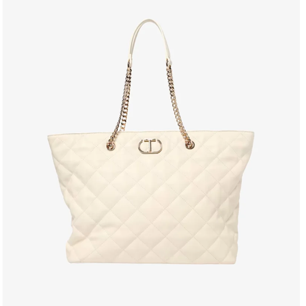 Borsa Twinset 251TB7370 colore madreperla. Eleganza e funzionalità si incontrano nella Borsa Tote Twinset 251TB7370 in raffinata tonalità madreperla. Caratterizzata da una silhouette ampia e strutturata, è la compagna ideale per affrontare con stile la routine quotidiana, grazie alla capienza generosa e all’organizzazione interna. Realizzata in ecopelle morbida con finitura imbottita, presenta un grande scomparto principale con chiusura a zip, tre pratiche tasche interne e manici lunghi per portarla comodamente a spalla. Perfetta per look sofisticati e versatili, dal lavoro al tempo libero.