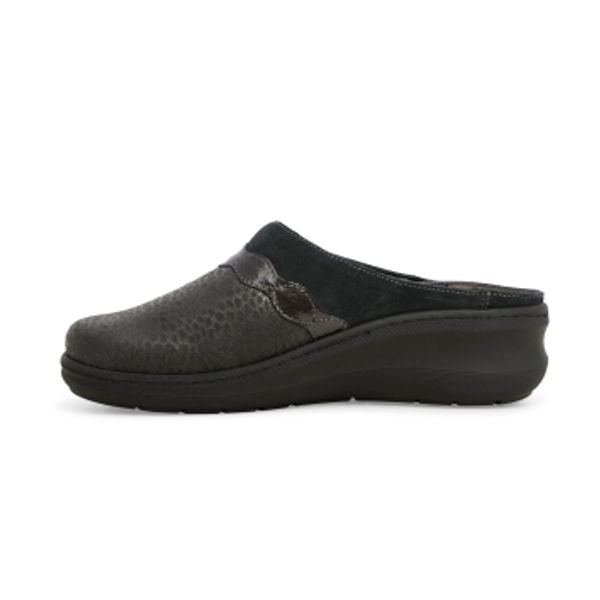 Ciabatte donna melluso PD900Z colore antracite. Ciabatte donna in pelle con fondo in gomma. Il plantare è estraibile , realizzato con materiali riciclati, in tessuto traspirante e anallergico.