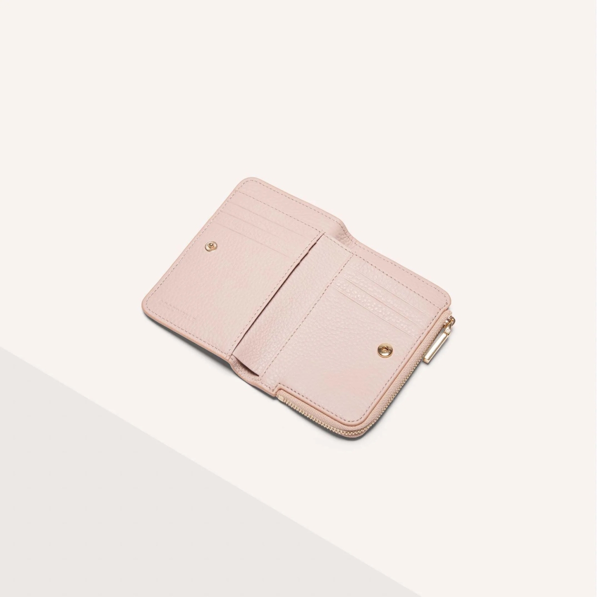 Portafoglio small Pelle con grana Portamonete chiuso con zip con apertura laterale Sei porta carte Portabanconote Due scomparti interni Protezione RFID Galvanica oro chiaro
