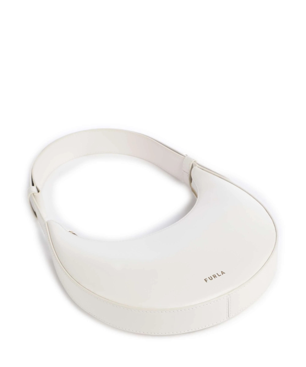 Mini formato e spazio compatto ideale per avere con sé tutti gli essentials. Furla Delizia è un condensato di pura eleganza. La borsa con struttura rigida a mezzaluna è realizzata in morbida pelle dal tocco setoso e liscio. Comoda da indossare a spalla è perfetta anche per il trasporto a mano grazie alla tracolla regolabile.