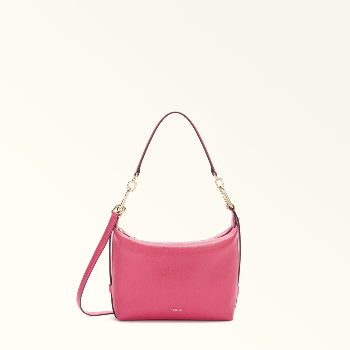 Formato mignon in pregiata pelle stampata per la hobo bag Furla Tonie. Il modello con due tracolle di lunghezze diverse consente un duplice indosso sia a spalla che come crossbody. Rimuovendo il manico è inoltre possibile agganciare insieme i due elementi a forma di logo Arco per una nuova e distintiva versione come top handle.