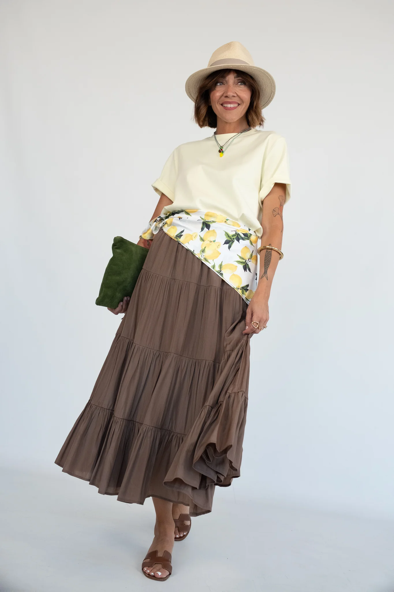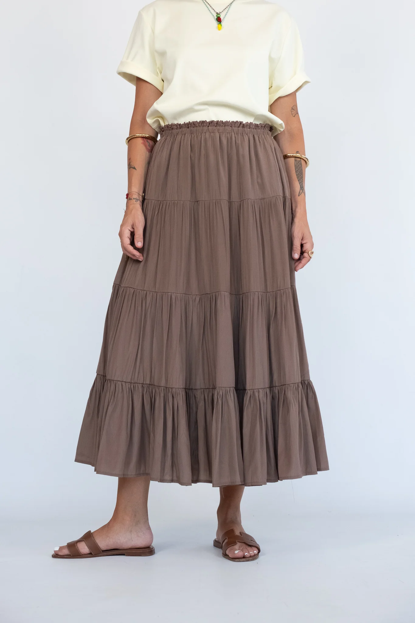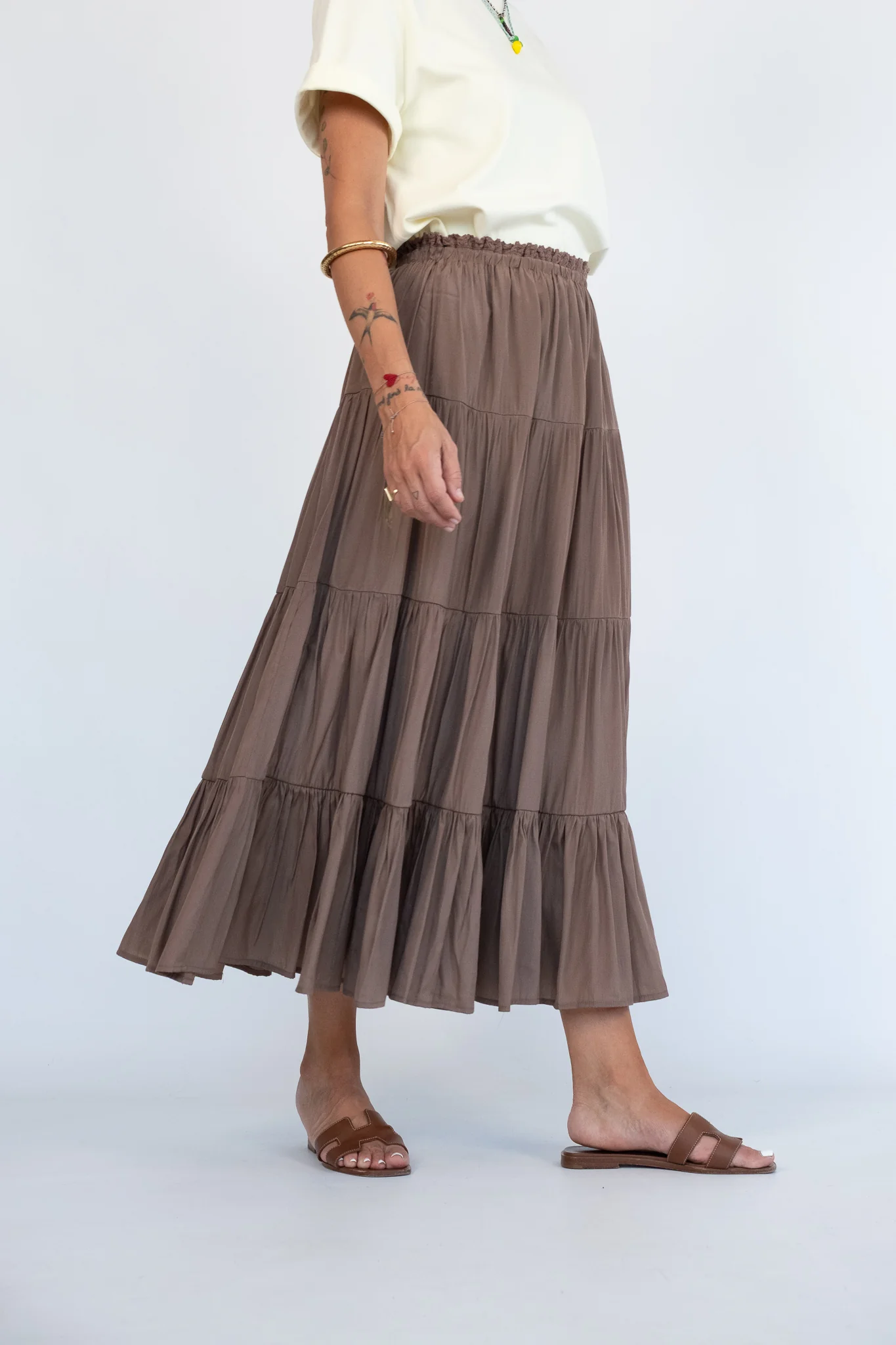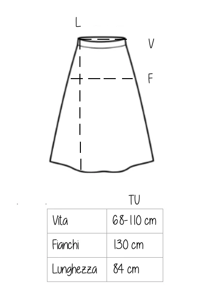 Composizione: 45% rayon, 55% poliammide. La gonna ha l’elastico in vita.