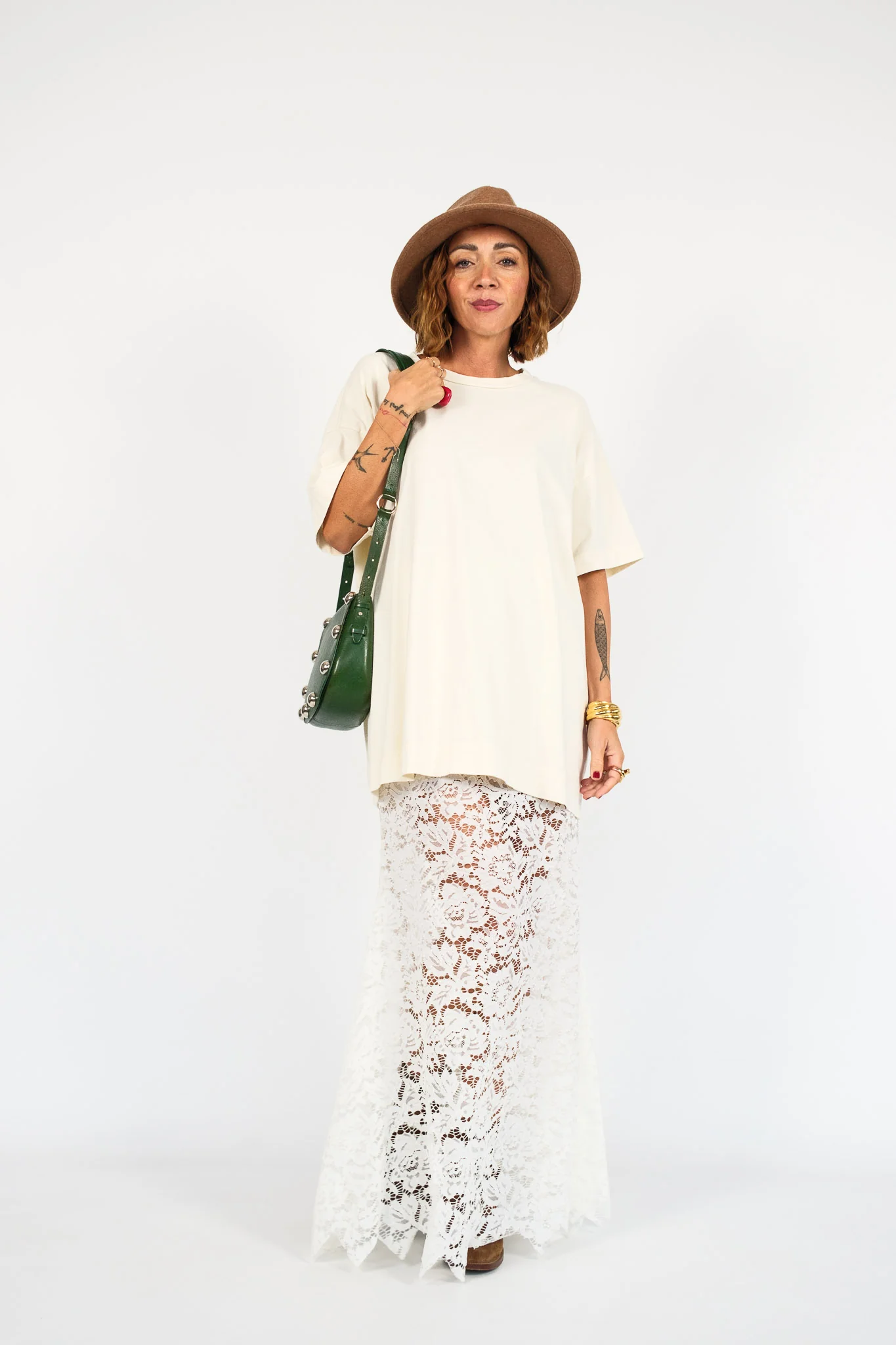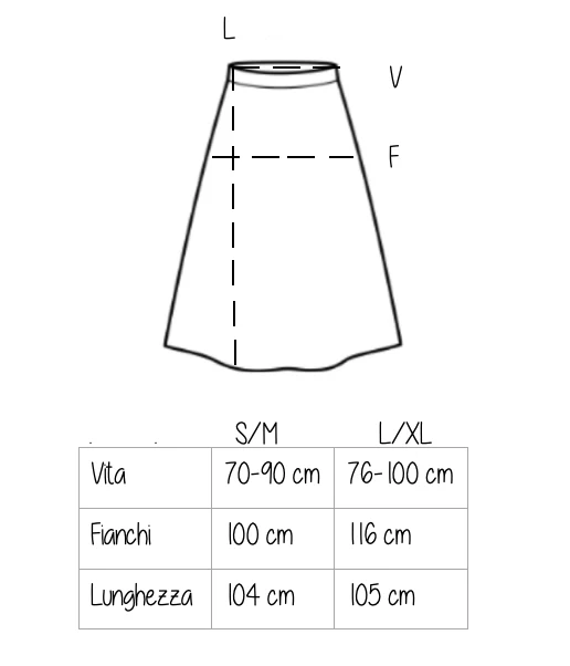 Composizione: 95% poliestere, 5% elastan. La gonna ha l’elastico in vita. Lile indossa la taglia S/M.