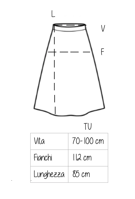 Composizione: 70% cotone, 25% poliammide, 5% altro. La gonna ha l’elastico in vita.