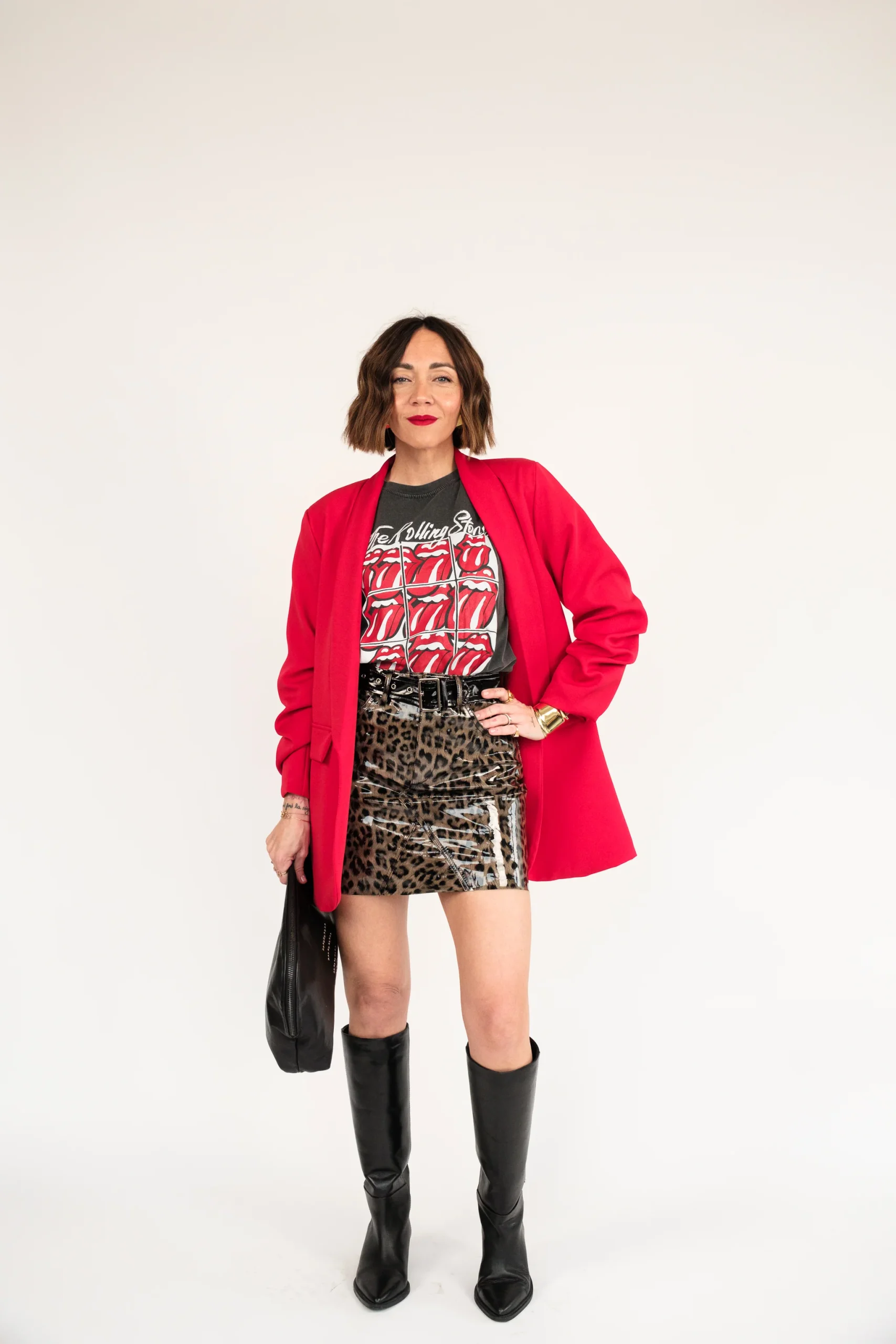 Composizione: 55% poliuretano, 45% viscosa. Fodera: 100% poliestere. La gonna ha la cintura inclusa. Lile indossa la taglia S.