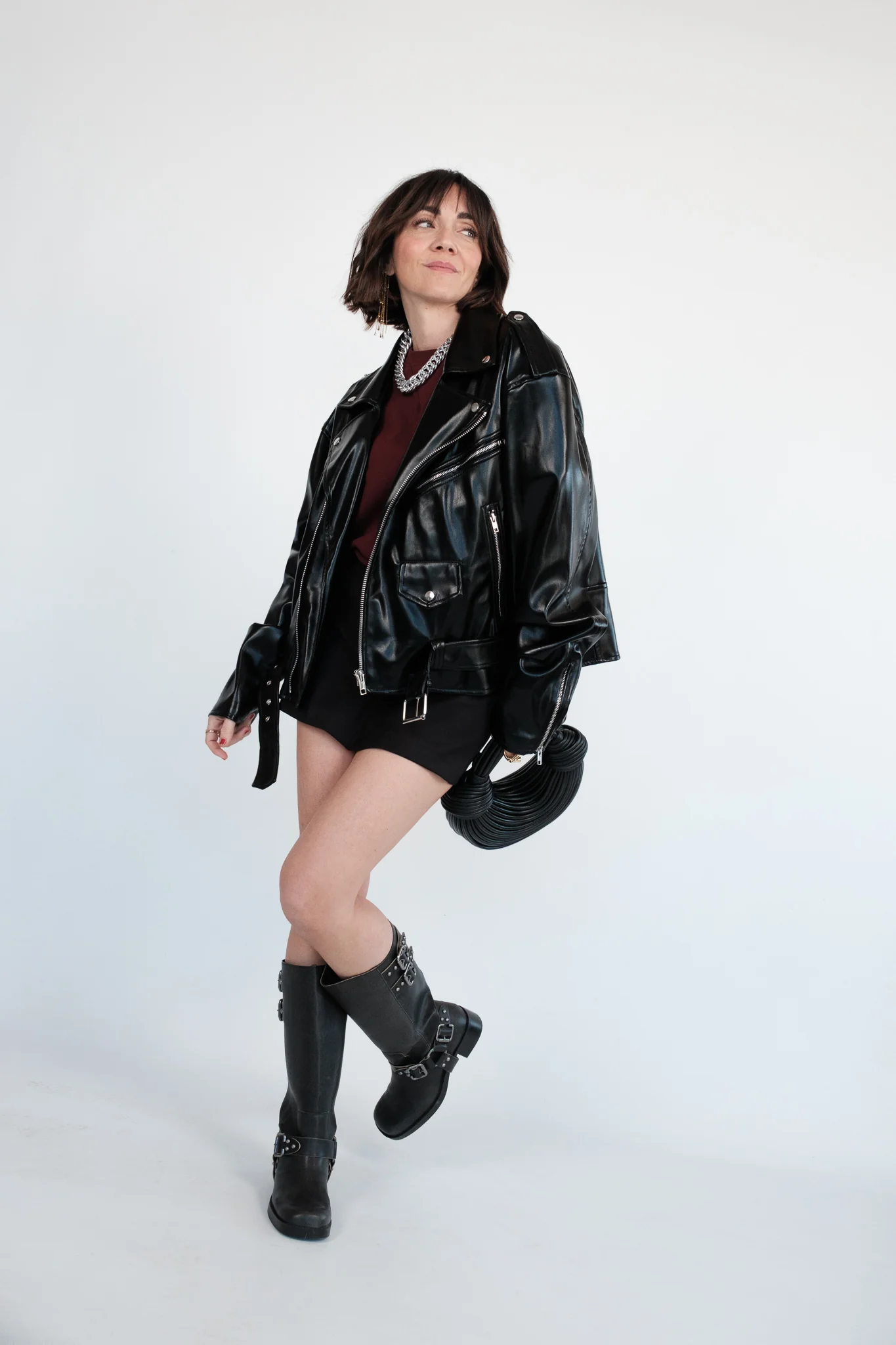Composizione: 65% poliestere, 32% viscosa, 3% elastomero. Lile indossa la taglia S/M.