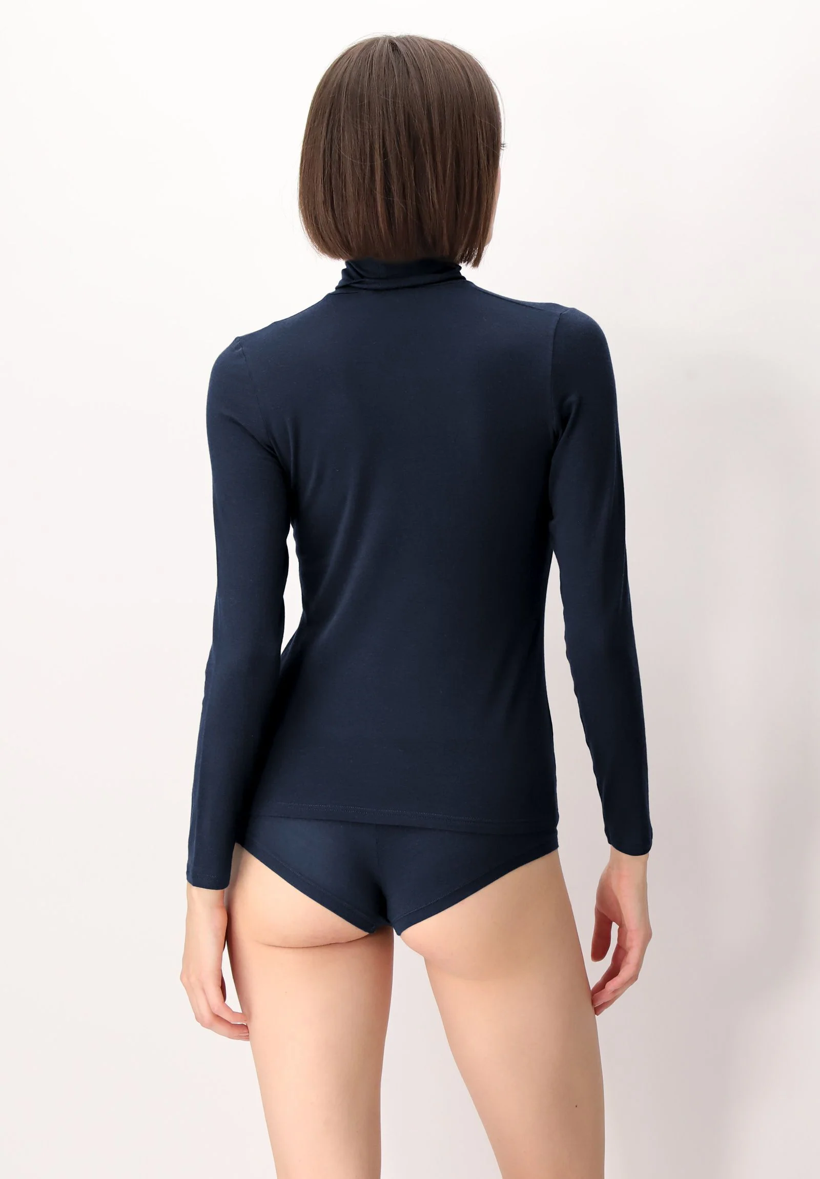 Questa maglia da donna a manica lunga con collo a dolcevita รจ un capo adatto per qualsiasi occasione. E’ realizzata in leggero, morbidissimo e caldo tessuto micromodal e cashmere elasticizzato per una perfetta vestibilitร .