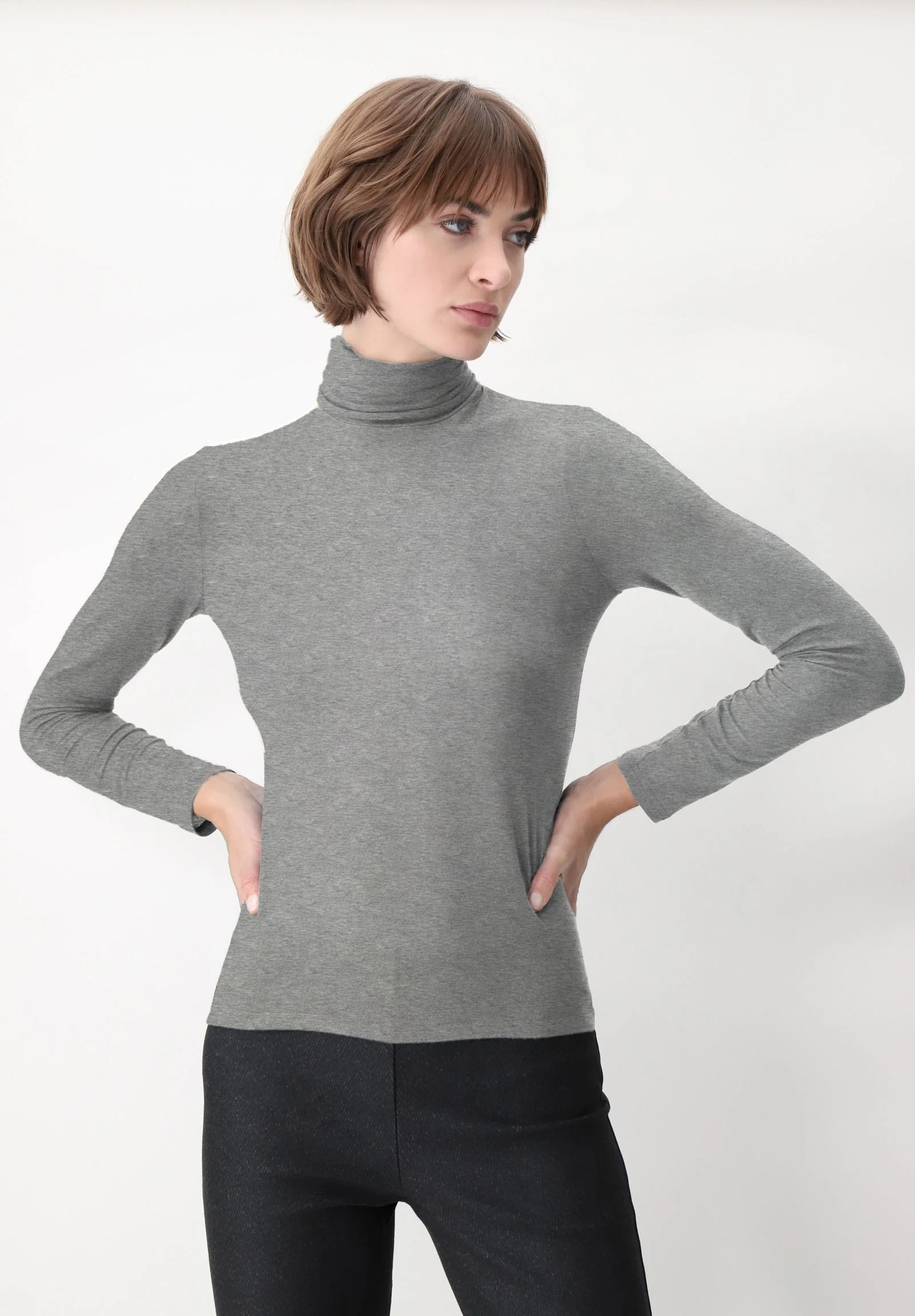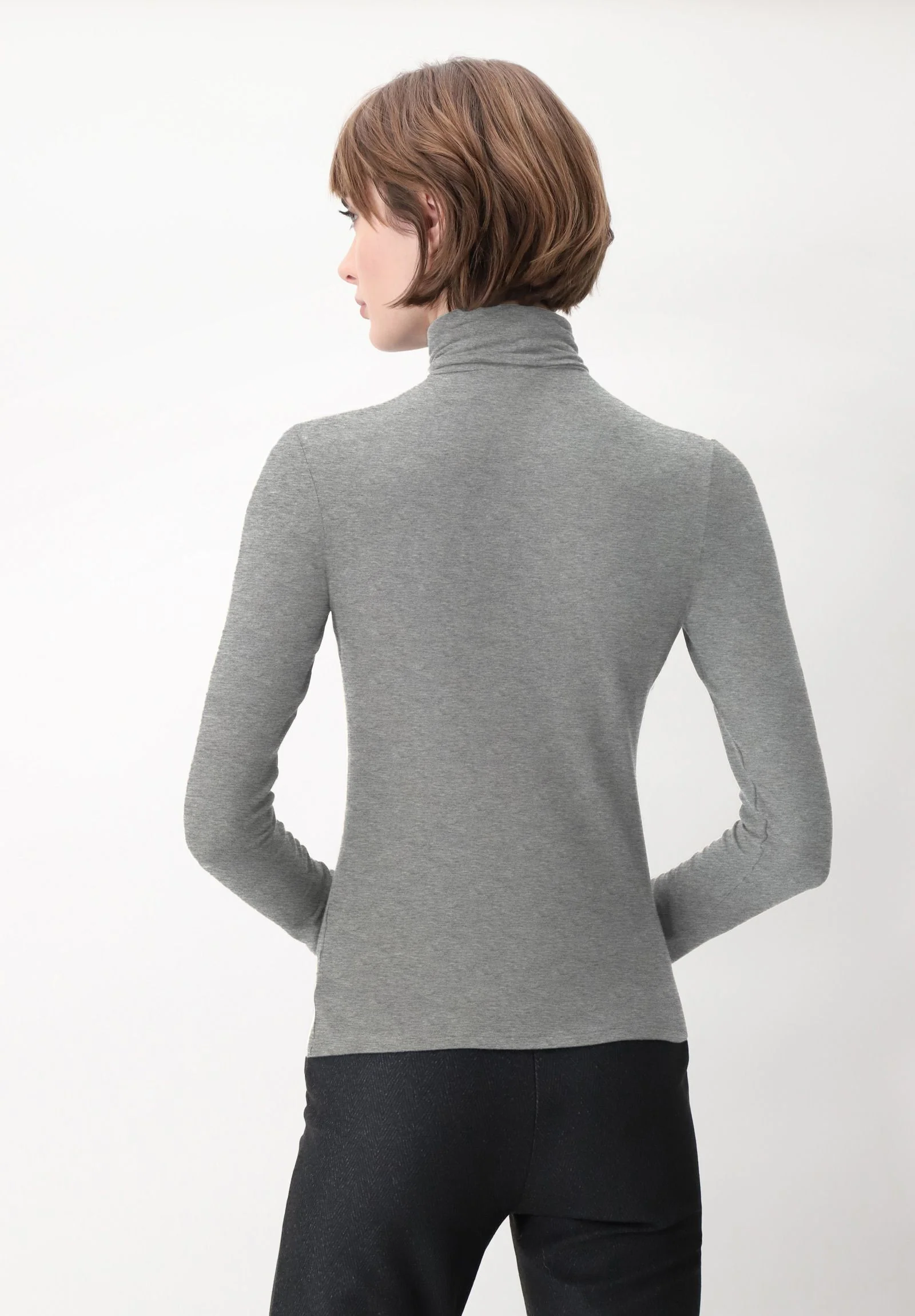 Maglia Dolcevita Manica Lunga in Micromodal e Cashmere Perfect Cashmere – Grigio Melange