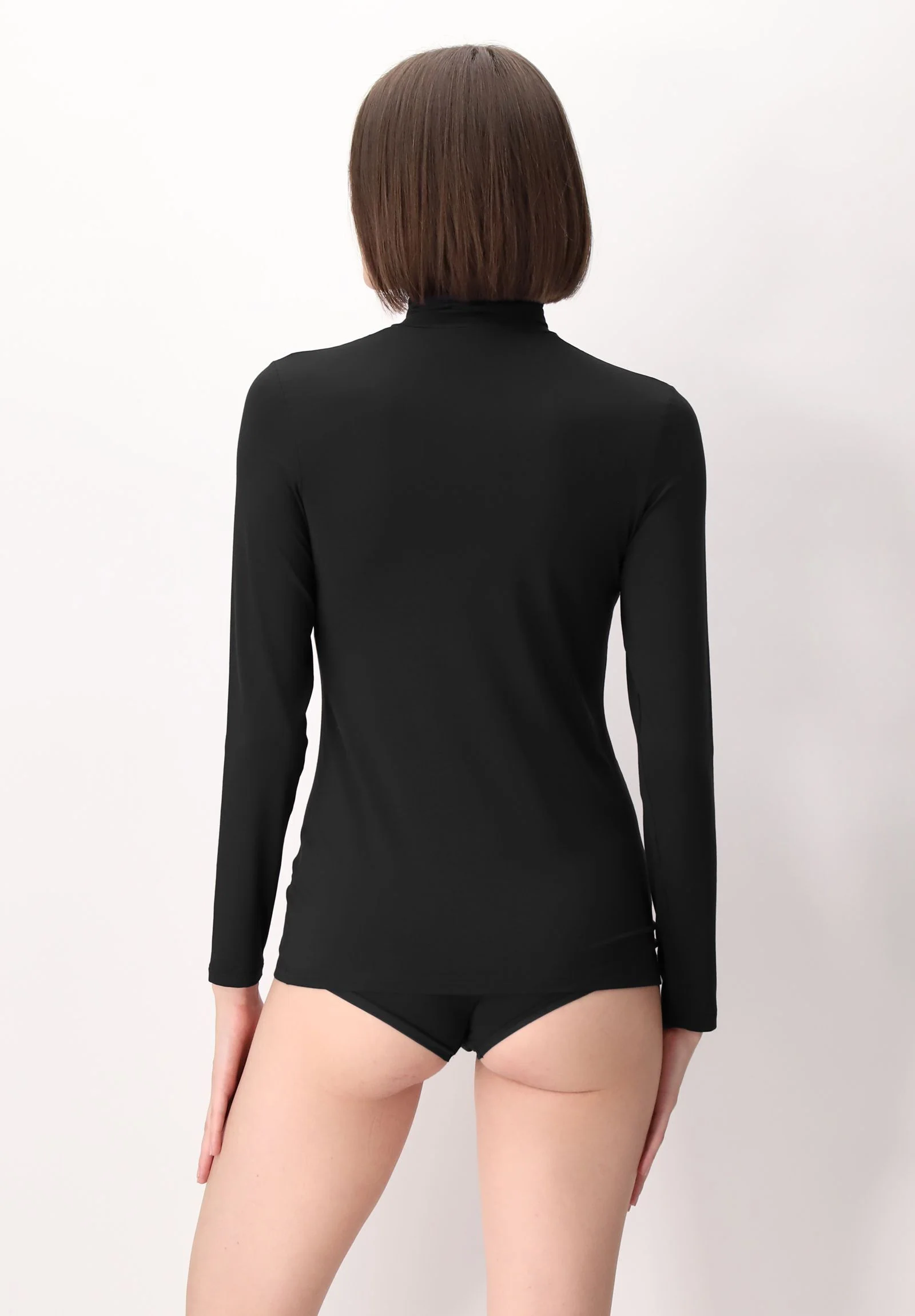 Maglia Dolcevita Manica Lunga in Modal Elasticizzato Perfect Line – Nero