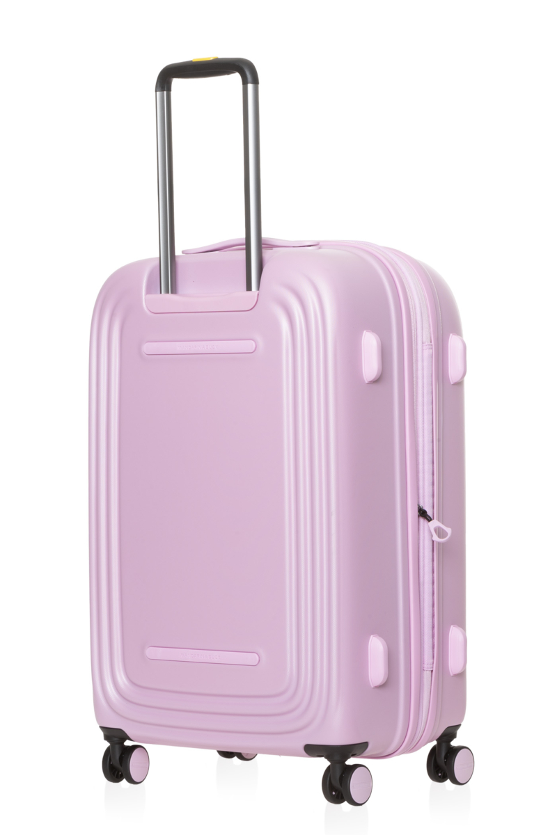 Trolley medio rigido espandibile in policarbonato dal volume compatto e linee morbide. Presenta 4 doppie ruote in tono di colore che garantiscono migliore mobilità, protezioni d’urto in gomma personalizzate e piedini laterali antigraffio. La maniglia logata è appiattita in modo da non incrementare le dimensioni totali. Il TSA lock è posizionato sulla parte superiore per un accesso facilitato. Le grafiche interne sono rinnovate.