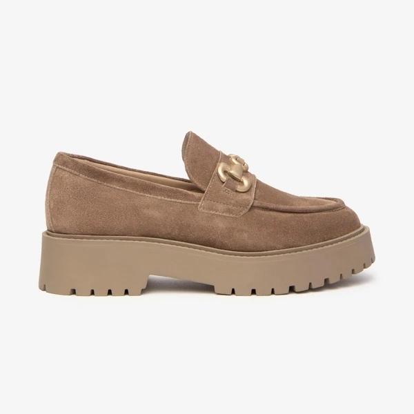 Mocassini Donna Nero Giardini I411390D colore mou. Mocassini donna in camoscio con fascetta decorativa e suola carrarmato in gomma-