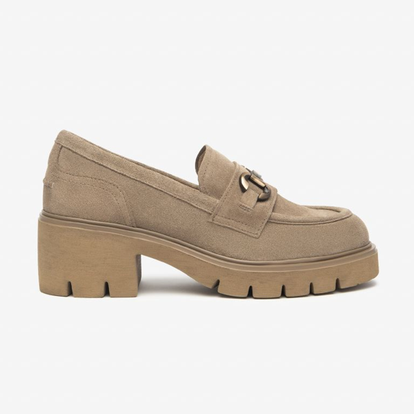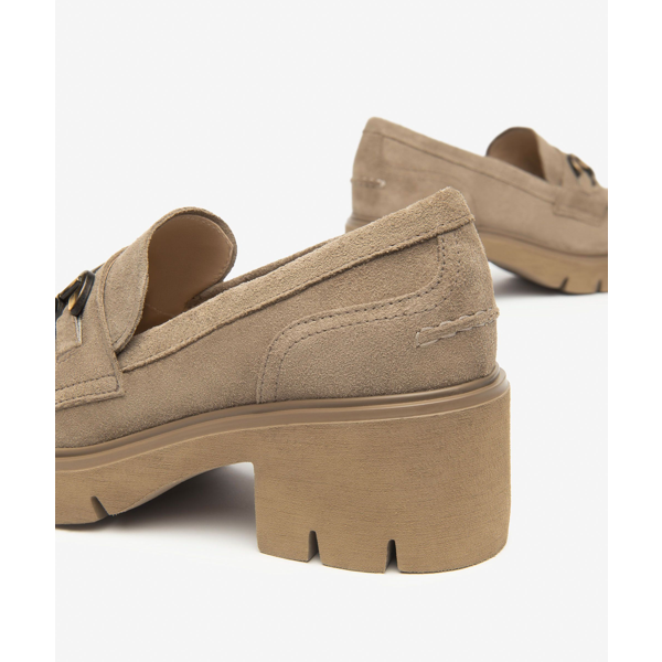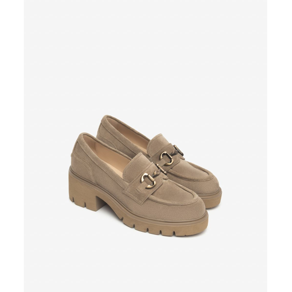 Mocassini Donna Nero Giardini I513984D colore beige. Mocassini donna in pelle con tacco a blocco di 6cm.