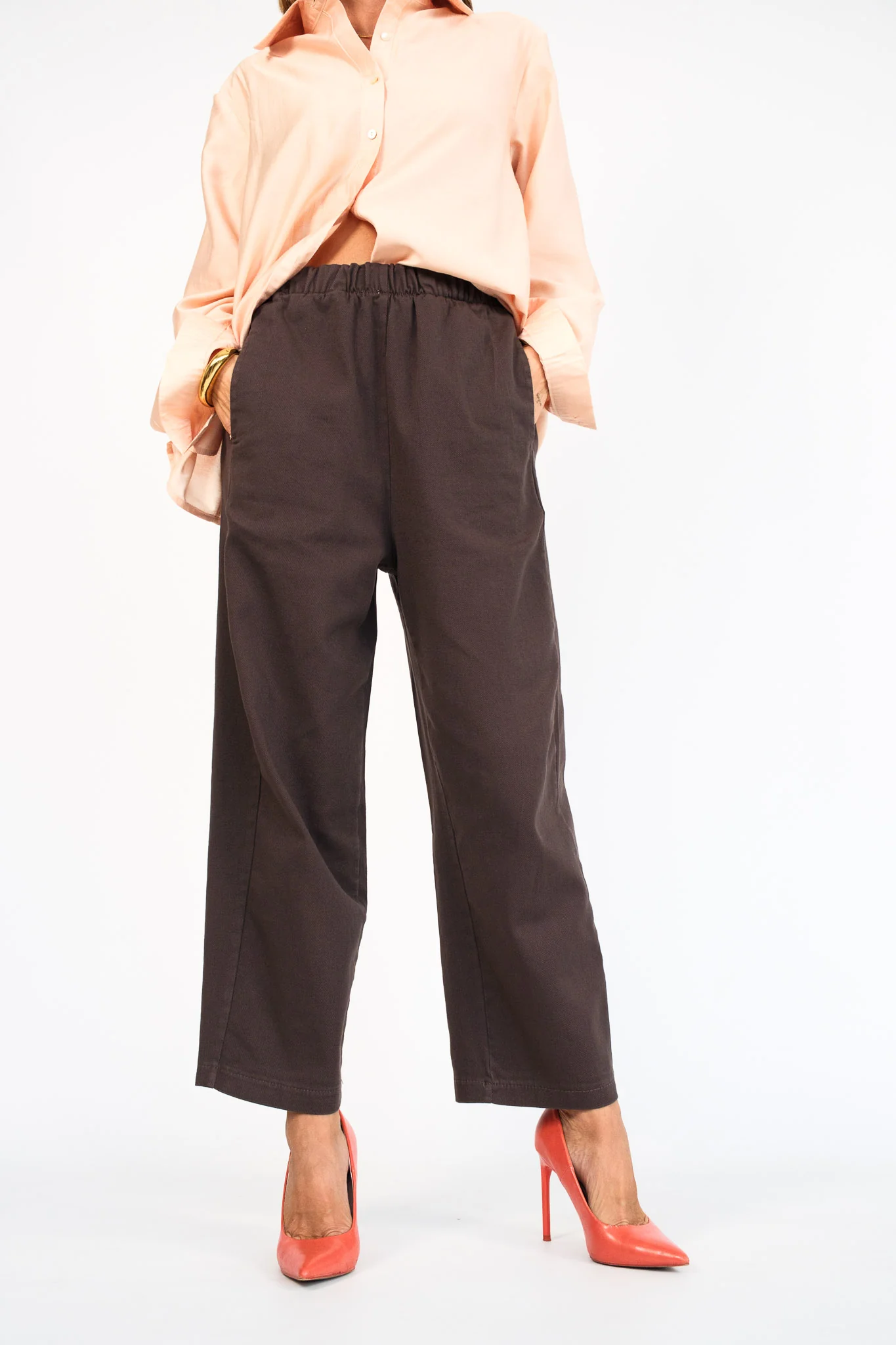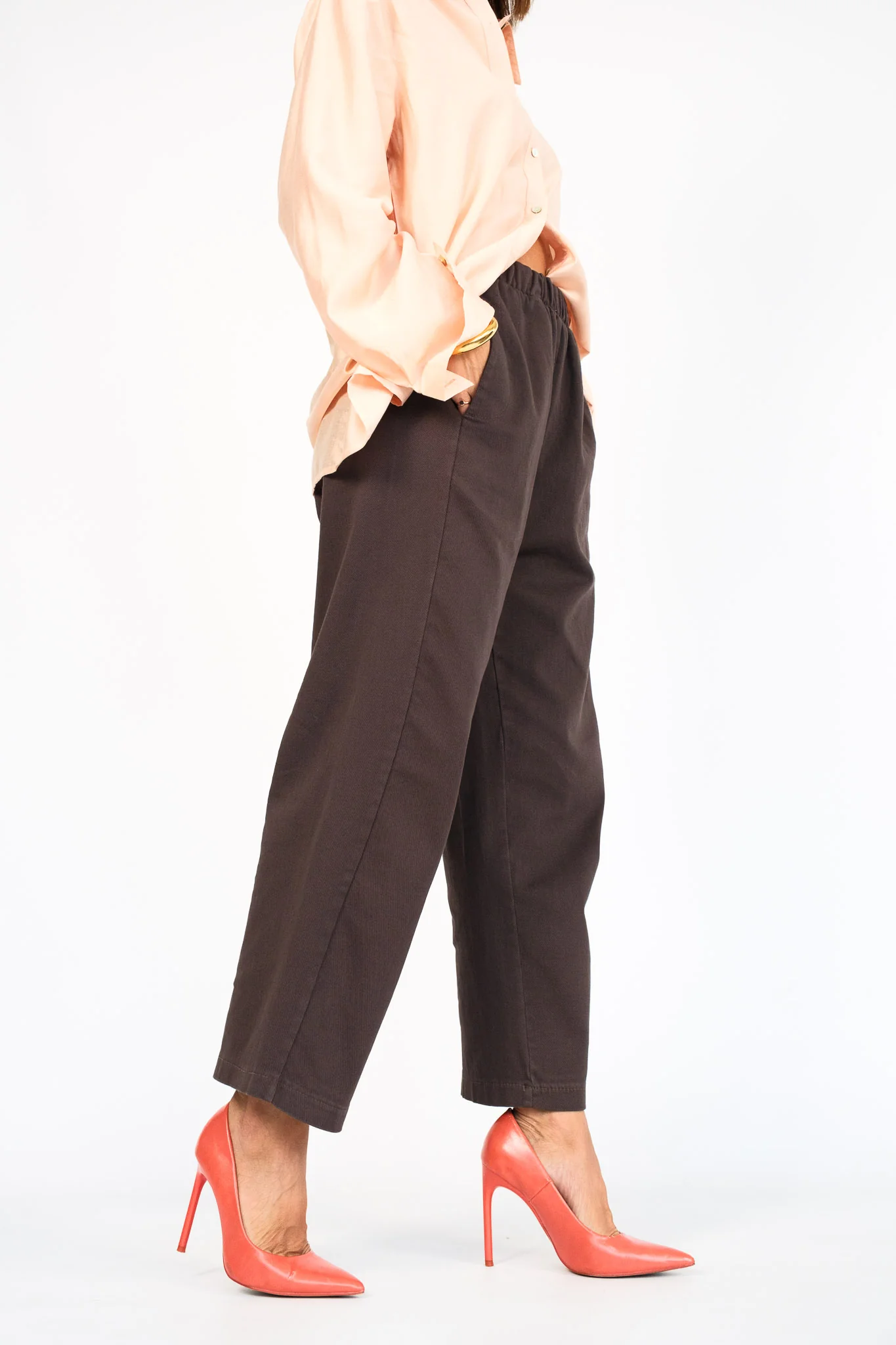 Composizione: 97% cotone, 3% elastan. Il pantalone ha l’elastico in vita.
