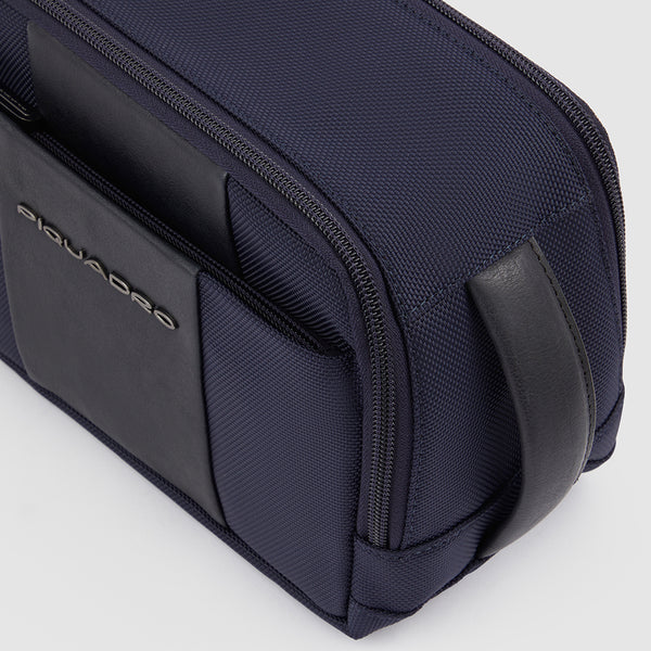 Beauty case uomo in tessuto riciclato e pelle a due scomparti