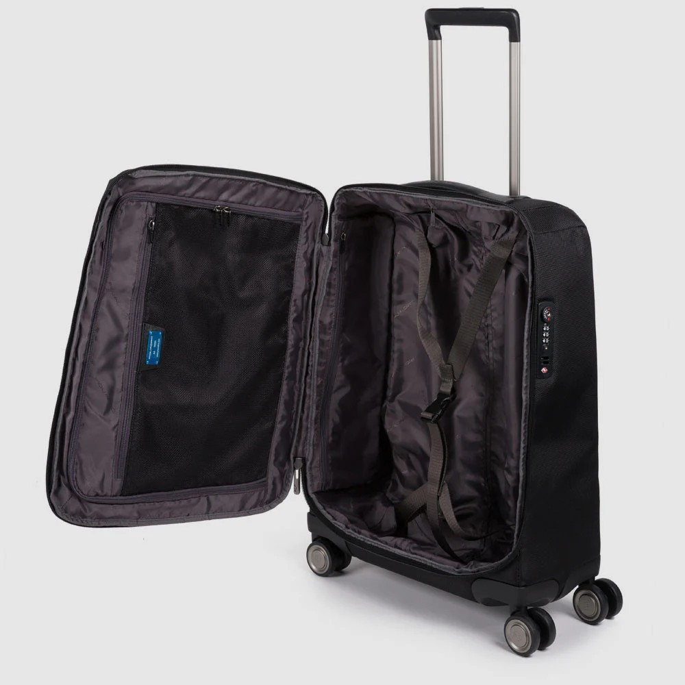 Piquadro trolley cabina in tessuto e pelle “Brief 2 Nero BV4343BR2.N