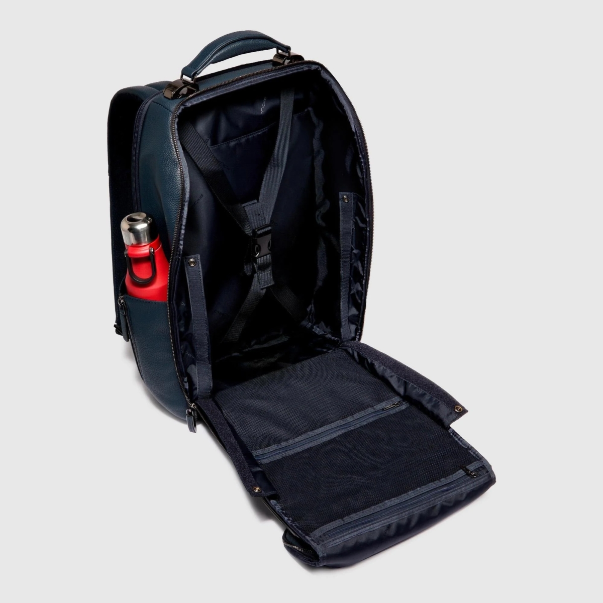 Zaino da viaggio personalizzabile in pelle porta pc e porta iPad®Pro 12,9″ con cinghia sternale, tasca porta bottiglia, protezioni antiurto e RFID