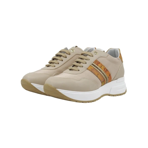 Sneakers Alviero Martini 1Classe N1910-1365. Sneakers donna colore sabbia con inserto in tessuto tecnico. Sul retro e sul laterale inserto stampa geo.