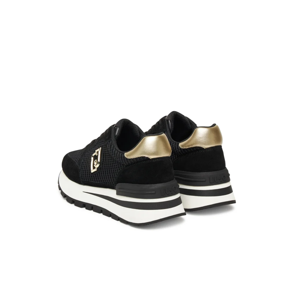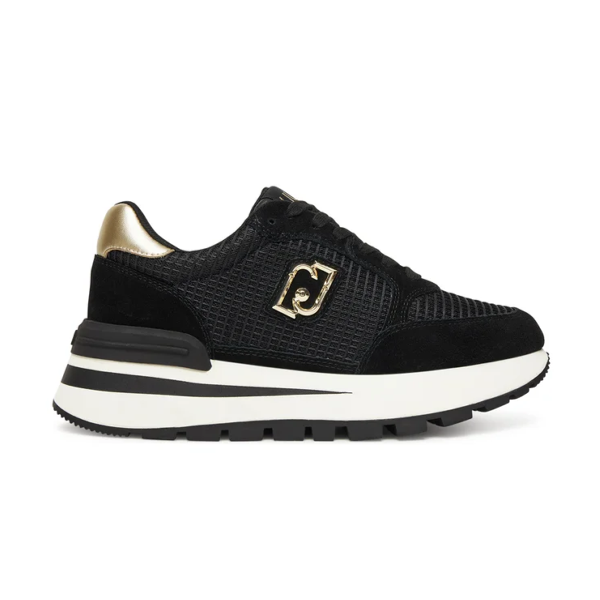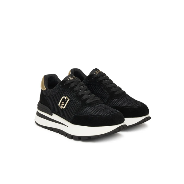 Sneakers Donna Liu J0 Amazing 25 BF5049PX027 colore nero. Scegli l’eleganza contemporanea delle sneakers Liu Jo Amazing 25 in versione total black. Caratterizzate da una tomaia multimateriale in suede e tessuto tecnico, queste calzature offrono uno stile unico grazie ai dettagli metallici e alla suola platform di 5 cm. La combinazione di materiali pregiati e il design ergonomico assicurano comfort e un look sempre attuale per ogni tua occasione quotidiana.