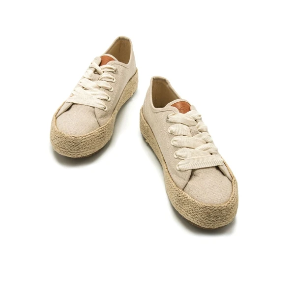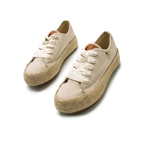 Sneakers Donna MTNG CARIBE rif. 60008B. Sneakers casual da donna Caribe Mustang, realizzate in colore beige con lacci bianchi. Si distinguono soprattutto per la loro suola progettata con il tradizionale intreccio di iuta. Come dettaglio, include una piccola etichetta laterale con il nome del marchio.