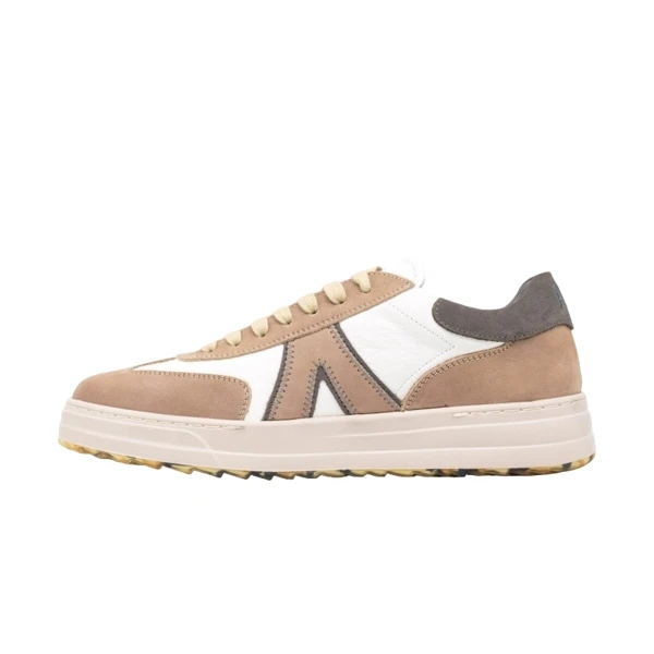 Sneakers Uomo Accademia 72 AC061 colore nocciola-bianco. Sneakers in pelle con inserti in camoscio. Prodotto realizzato in Italia.
