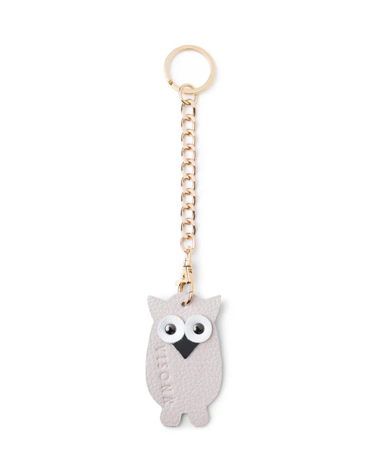 100 % made in Italy charm per borsa o portachiavi a forma di gufo materiale: pelle di vitello fiore pieno